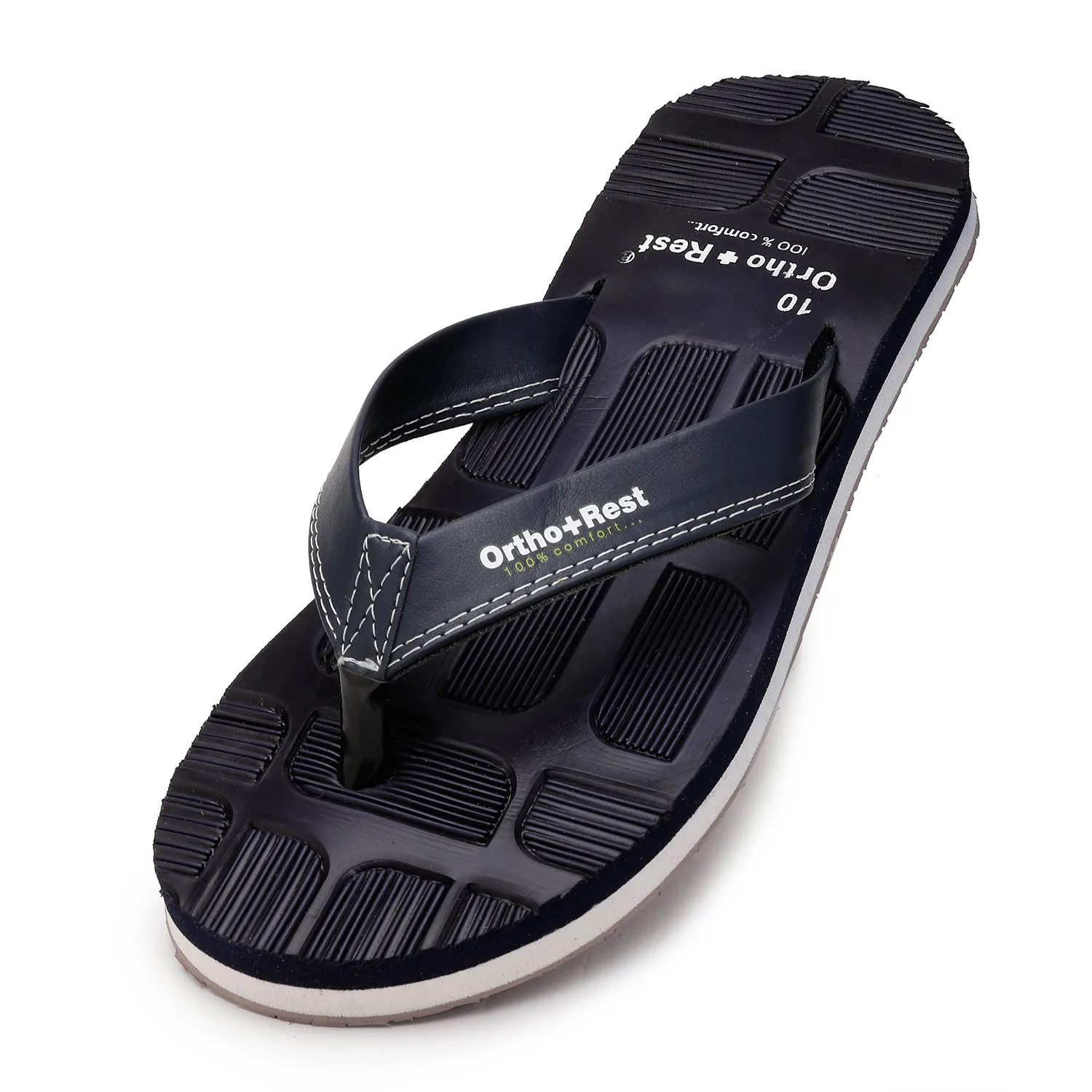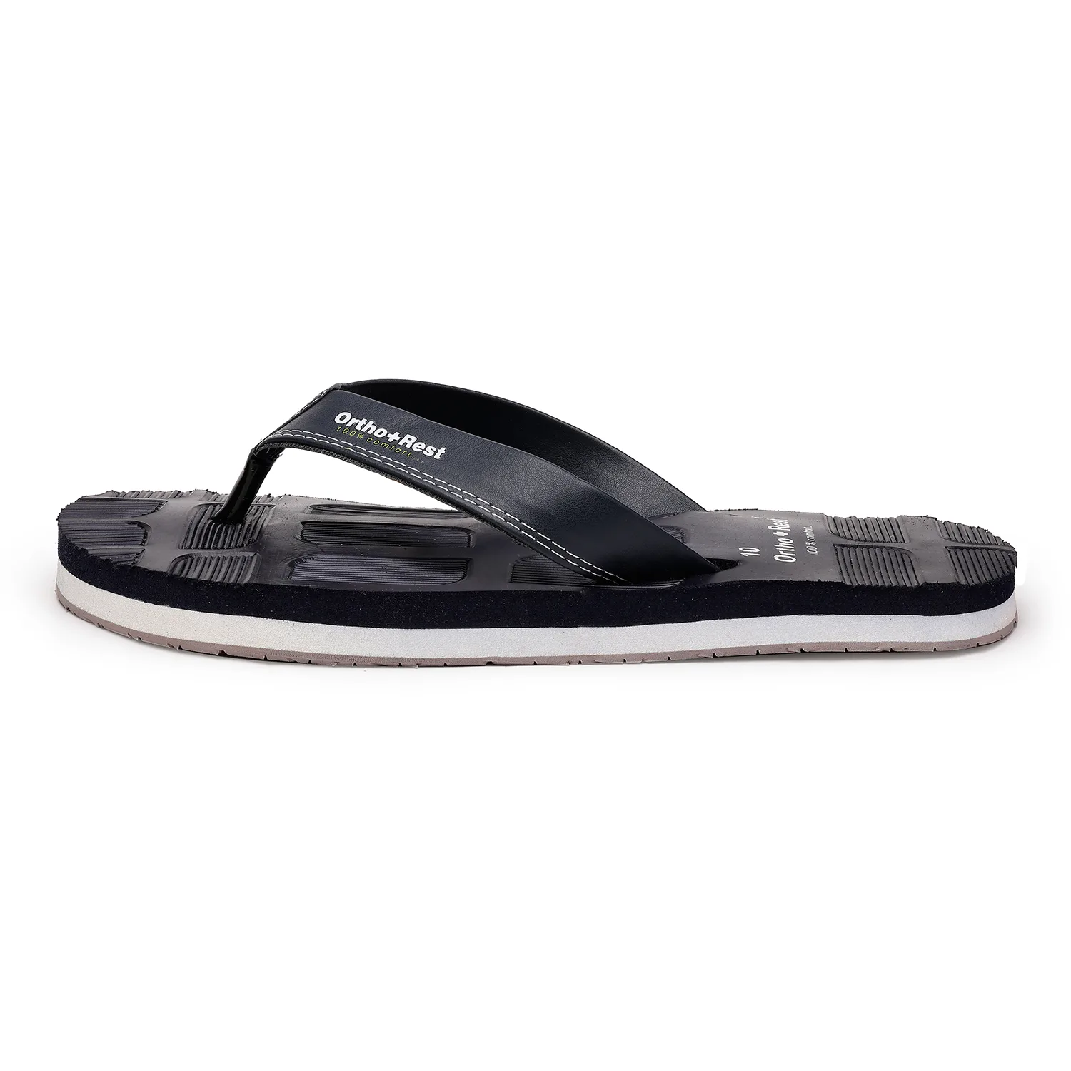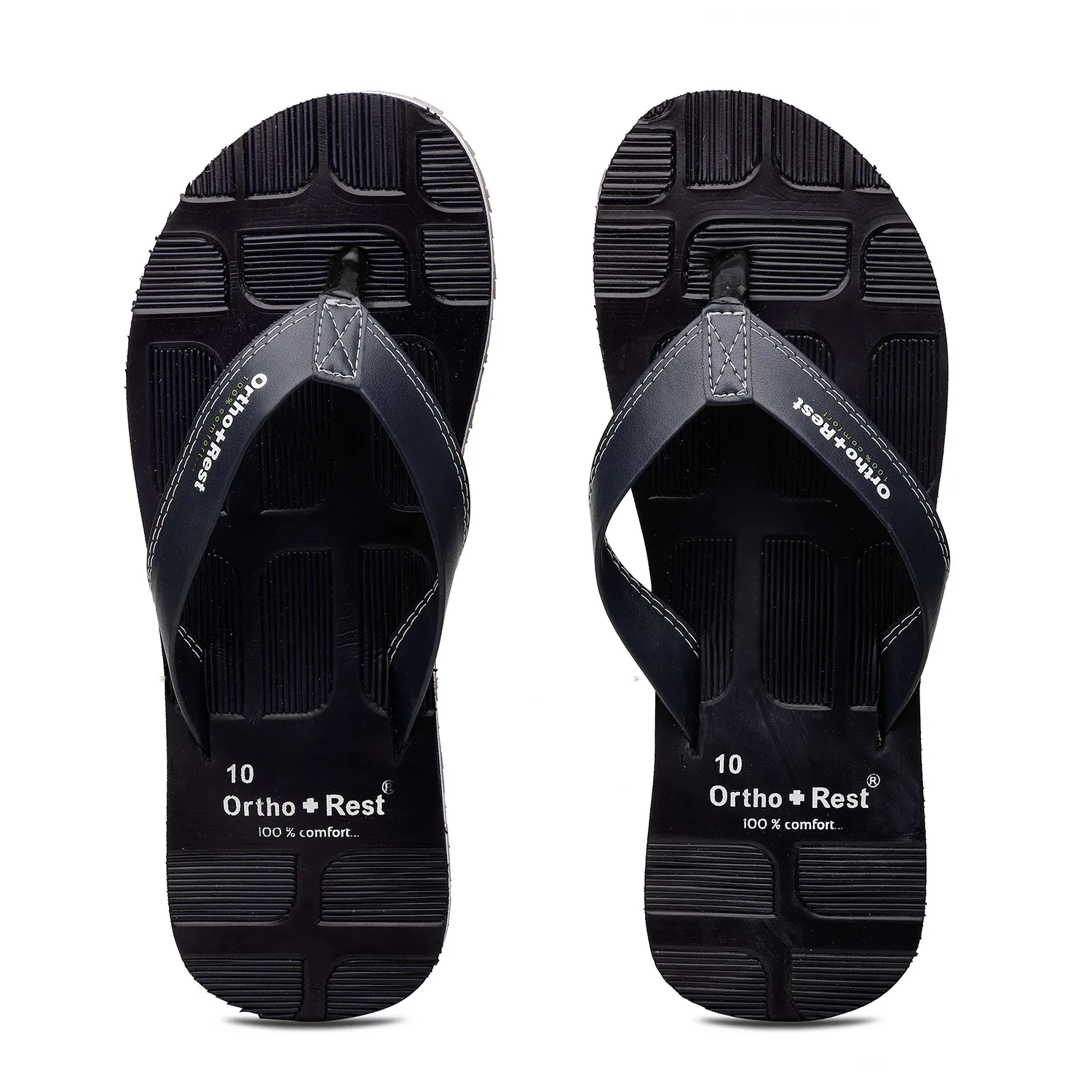 Experience ultimate comfort with the Ortho+Rest Blocked Sole Flip Flops, designed for all-day support and style. Crafted with a unique ergonomic blocked sole pattern, these flip flops offer superior grip and anti-slip protection, making them perfect for both indoor and outdoor wear. The orthopedic footbed provides targeted arch support, reducing stress on your feet and joints, while the soft, durable straps ensure a secure and comfortable fit.
