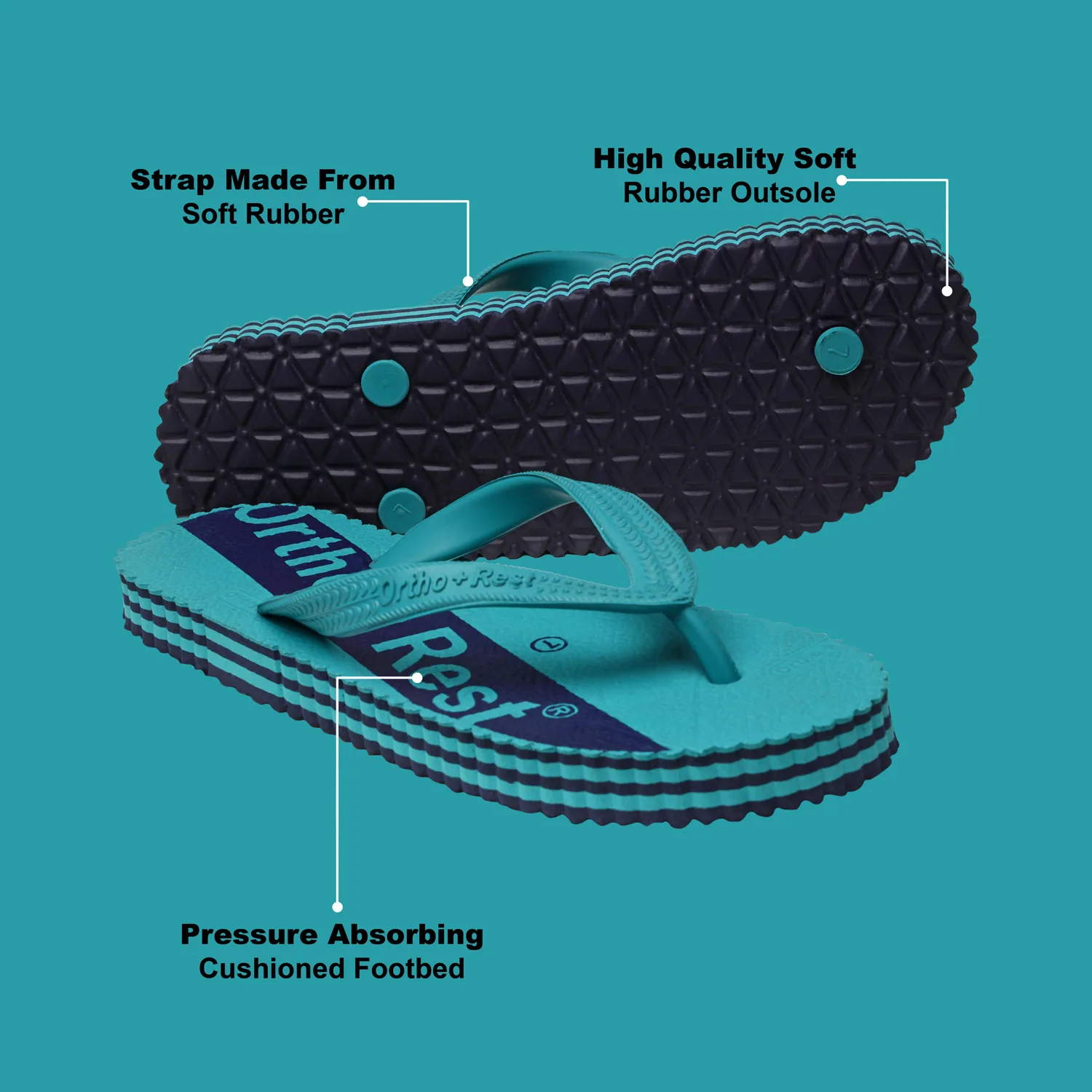 The upper of the Ortho + Rest hawai Slippers is made from high-quality rubber material, which offers excellent flexibility, water resistance, and long-lasting durability. This ensures that your slippers can withstand various terrains and weather conditions.
