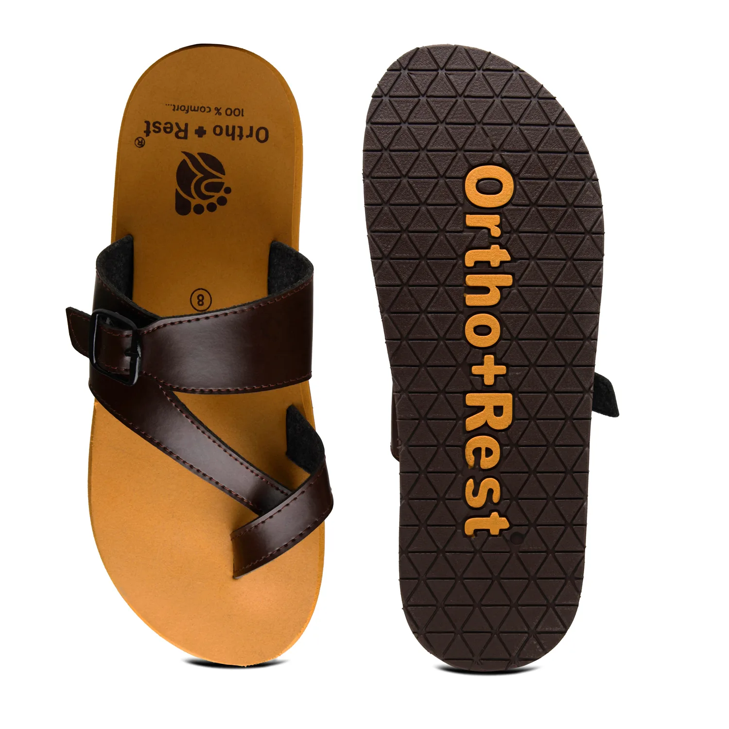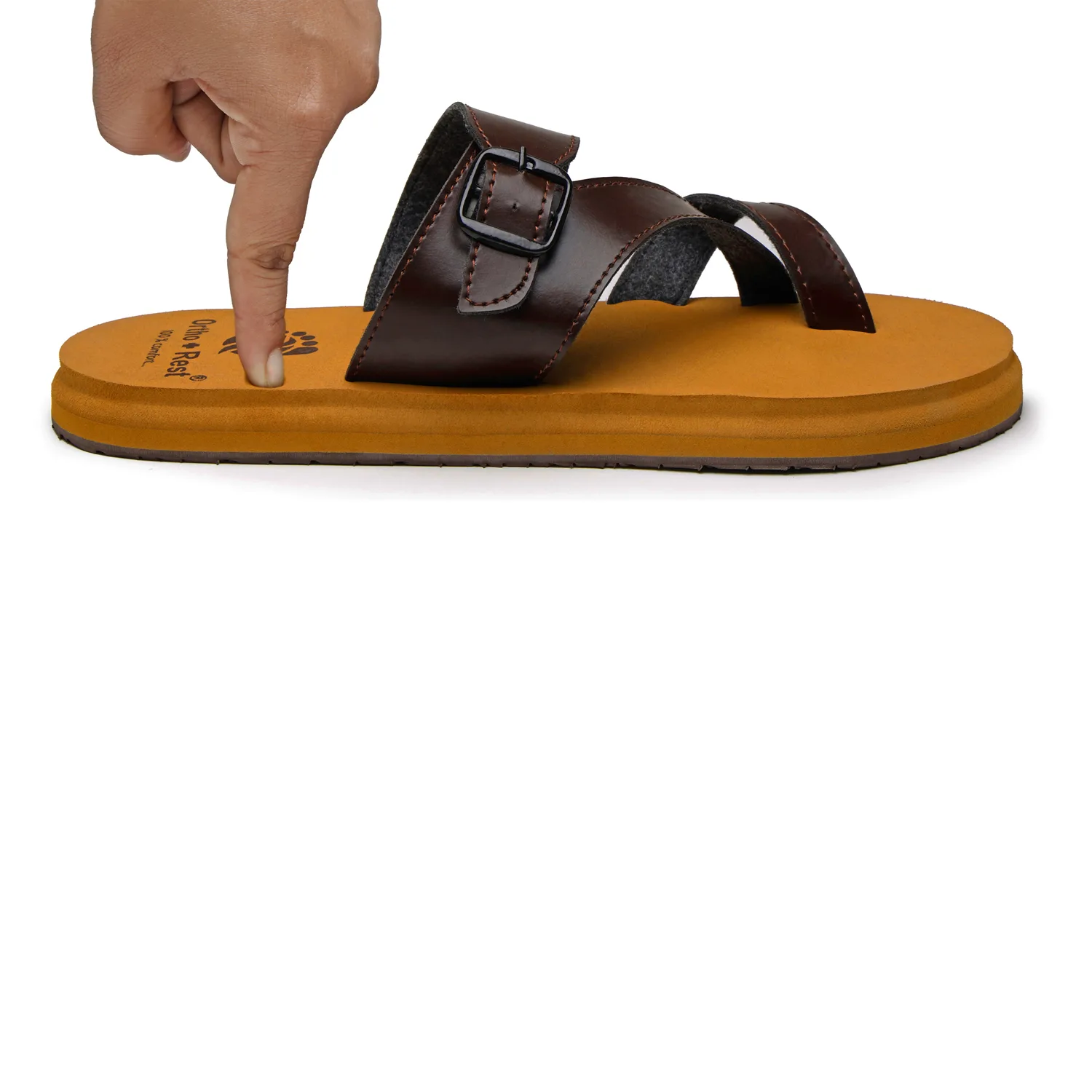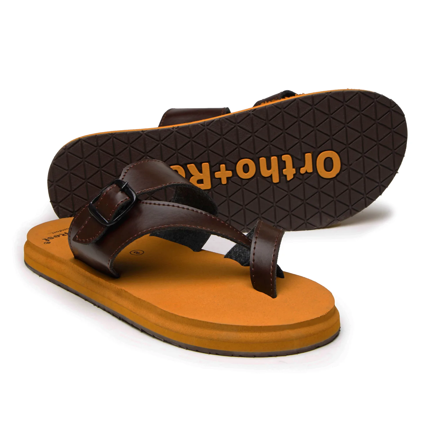 The Brown and Tan Ortho Slipper Closed toe sandal has been engineered from carefully selected and specially blended polymers keeping in mind the requirements of paining heel and foot. It provides that extra yet optimum thrust of cushioning required by an average Indian feet.