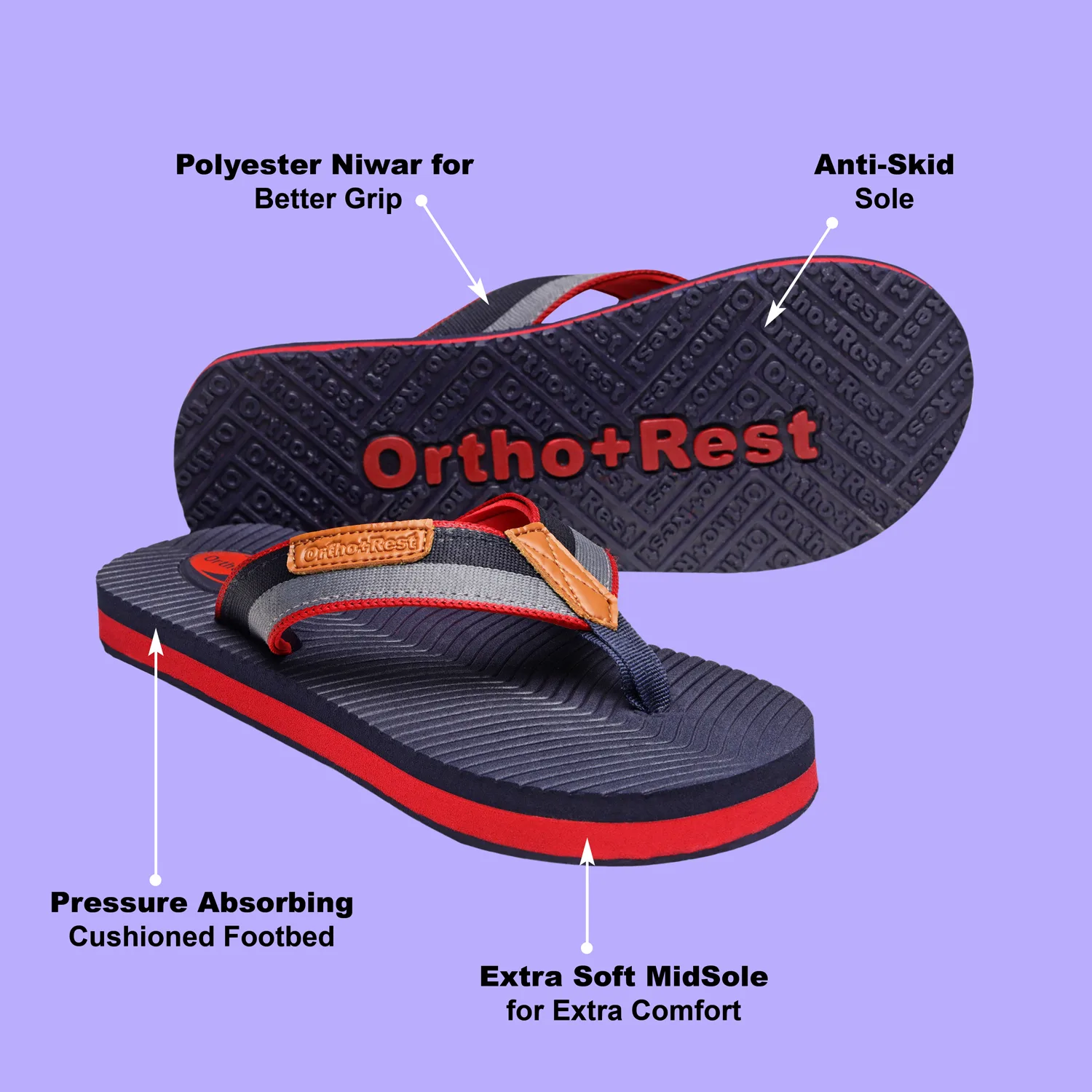 Introducing our Ortho + Rest Slippers for men, a stylish and comfortable choice for casual wear. These slippers are crafted with a durable Niwar material that combines versatility, breathability, and a touch of elegance.
