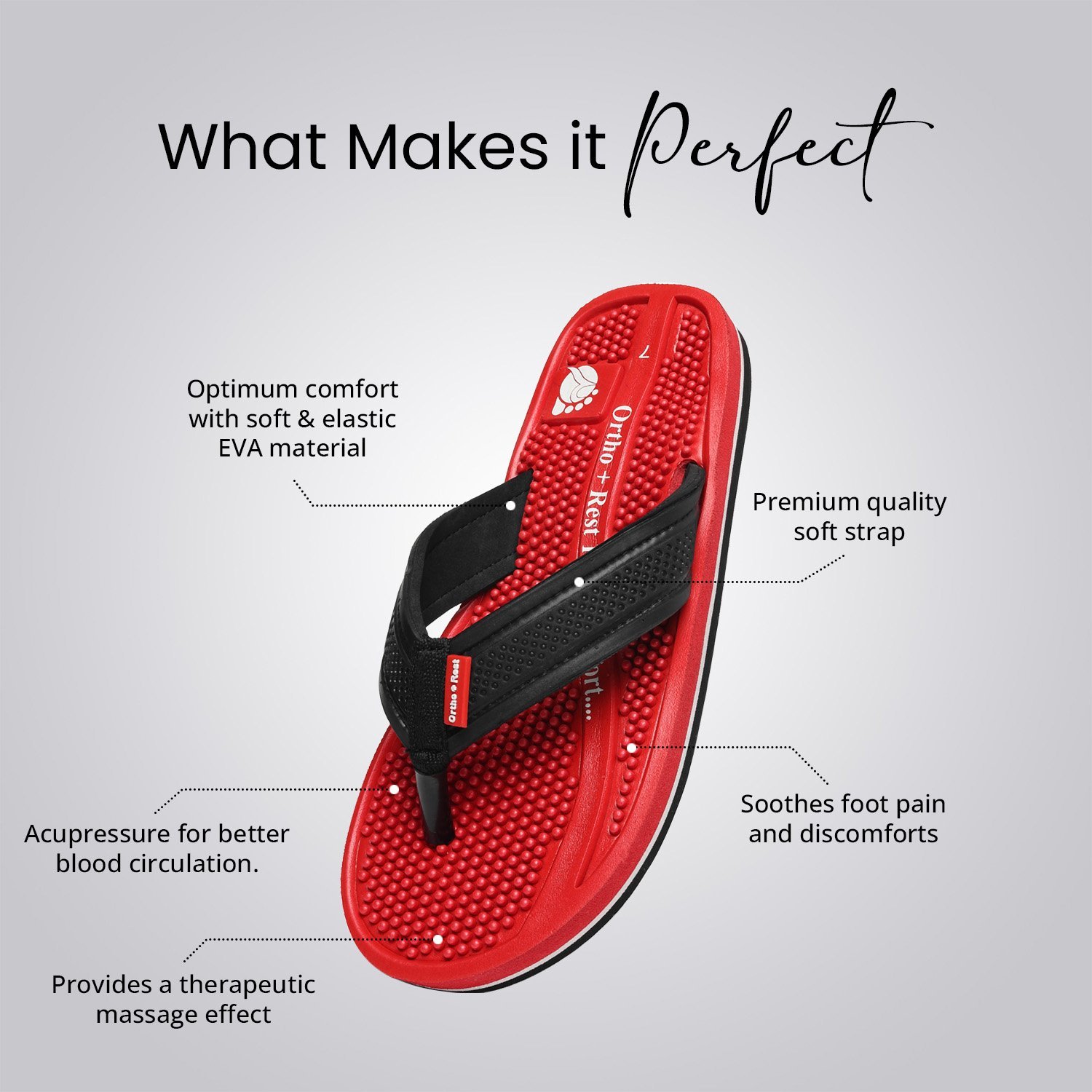 Featuring a scientifically designed acupressure massage sole, they stimulate key pressure points, alleviating foot pain and boosting circulation with every step. Available in Red, Black, Grey, and Blue, these slippers combine vibrant design with practical functionality.