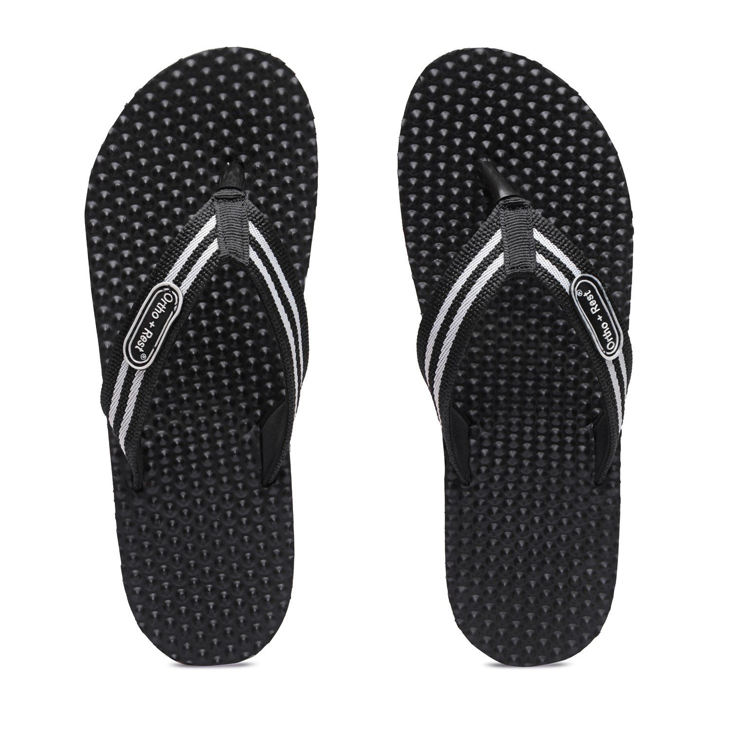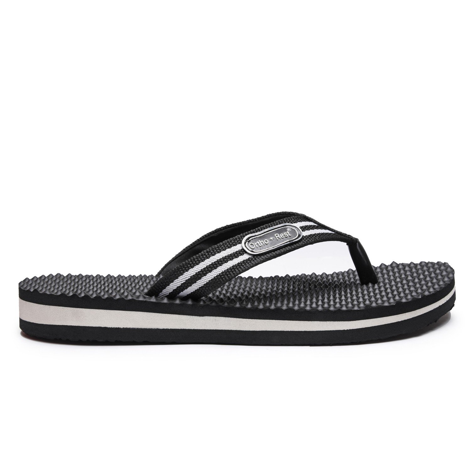The sliders feature a soft and cushioned footbed that provides excellent support and absorbs shock, reducing the strain on your feet and joints. The orthopedic design ensures proper alignment of the foot.