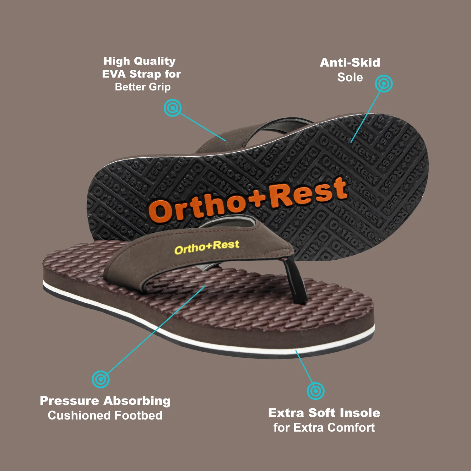 Ortho + Rest slippers and sandals has been engineered from carefully selected and specially blended polymers keeping in mind the requirements of paining heel and foot. It provides that extra yet optimum thrust of cushioning required by an average Indian feet.