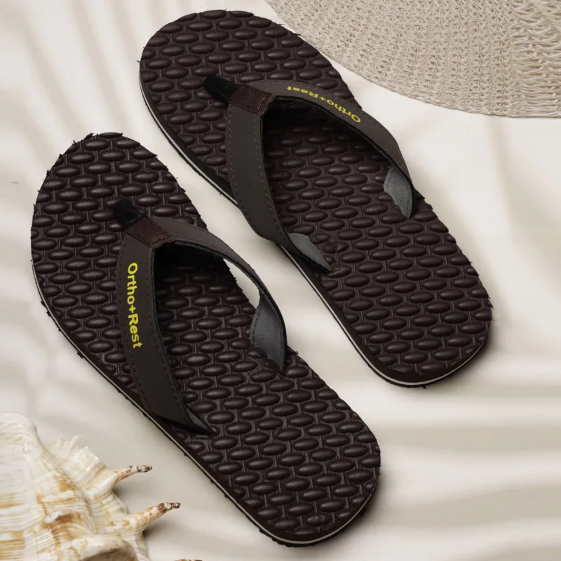 Ortho + Rest slippers and sandals has been engineered from carefully selected and specially blended polymers keeping in mind the requirements of paining heel and foot. It provides that extra yet optimum thrust of cushioning required by an average Indian feet.