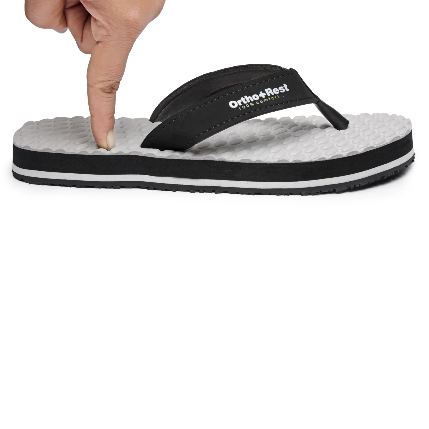 Ortho + Rest may be effective in many cases. It’s special material provides extra comfort, It is skid and slip resistant and provides symptomatic relief in conditions of aching heel and feet. Being an open footwear it is helpful for diabetics as injuries due to closed,tight fitting and hard soled shoes and prespiration are prevented.