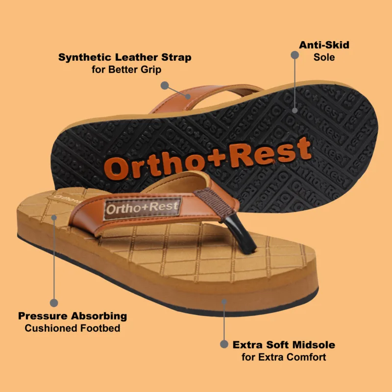 Ortho + Rest slippers and sandals has been engineered from carefully selected and specially blended polymers keeping in mind the requirements of paining heel and foot. It provides that extra yet optimum thrust of cushioning required by an average Indian feet. Ortho + Rest may be effective in many cases. It’s special material provides extra comfort, It is skid and slip resistant and provides symptomatic relief in conditions of aching heel and feet.