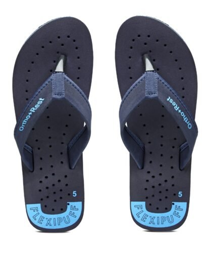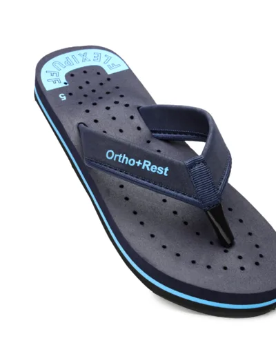 Everyone loves having blue footwear and accessories. Adding comfort and style to your looks, our Blue Ortho + Rest Comfort Slippers are perfect for your wardrobe. These proffer optimal convenience and mobility to the wearer while supporting the foot through its thick strap and base.