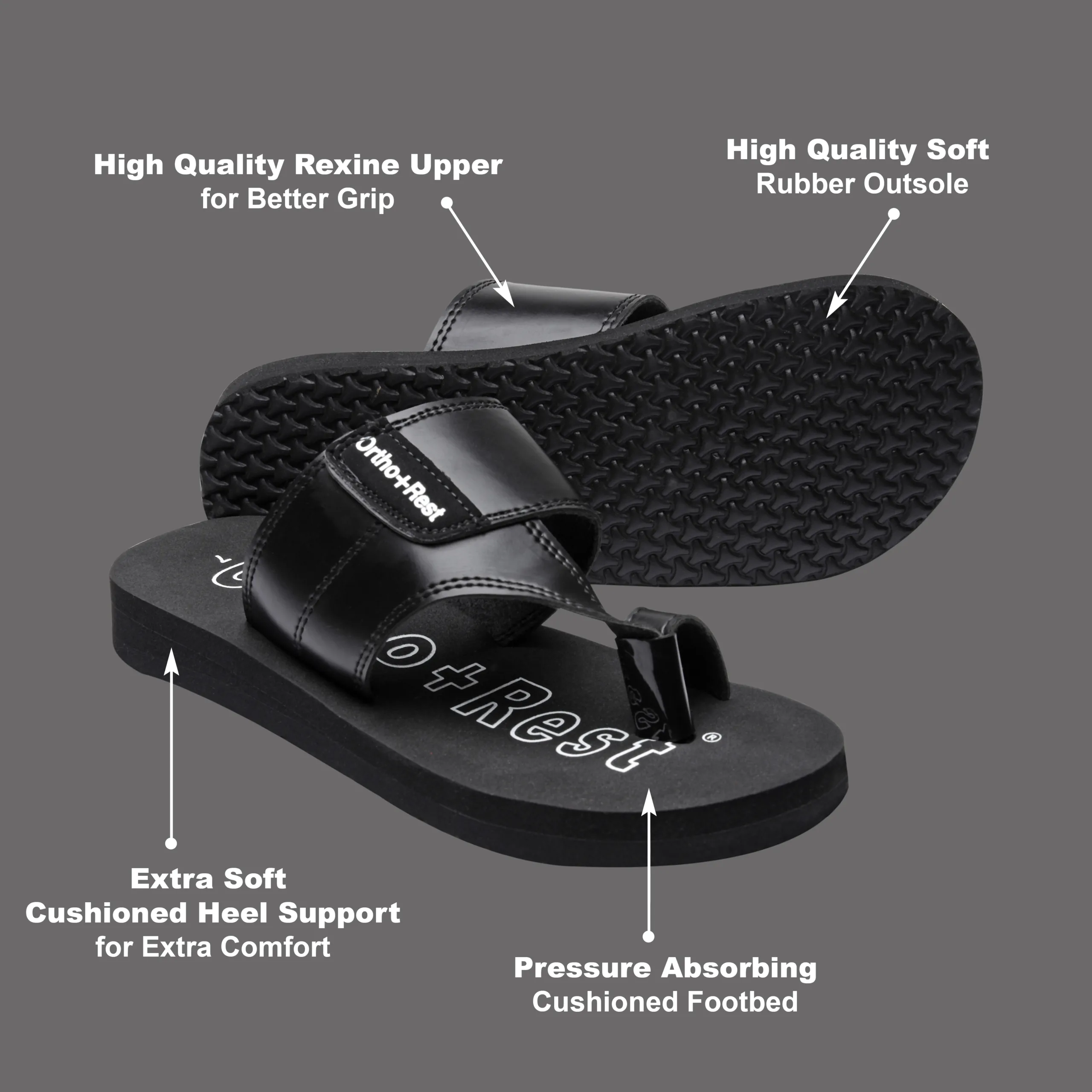 Ortho + Rest may be effective in many cases. It’s special material provides extra comfort, It is skid and slip resistant and provides symptomatic relief in conditions of aching heel and feet. Being an open footwear it is helpful for diabetics as injuries due to closed,tight fitting and hard soled shoes and prespiration are prevented.